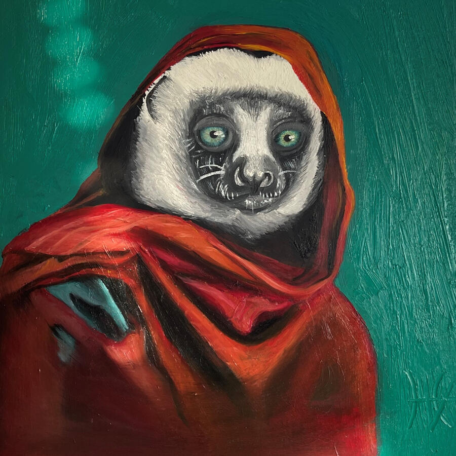 "The Afghan Lemur" | 2021 | Oil on wood | 12in x 12in | Surreal Commission