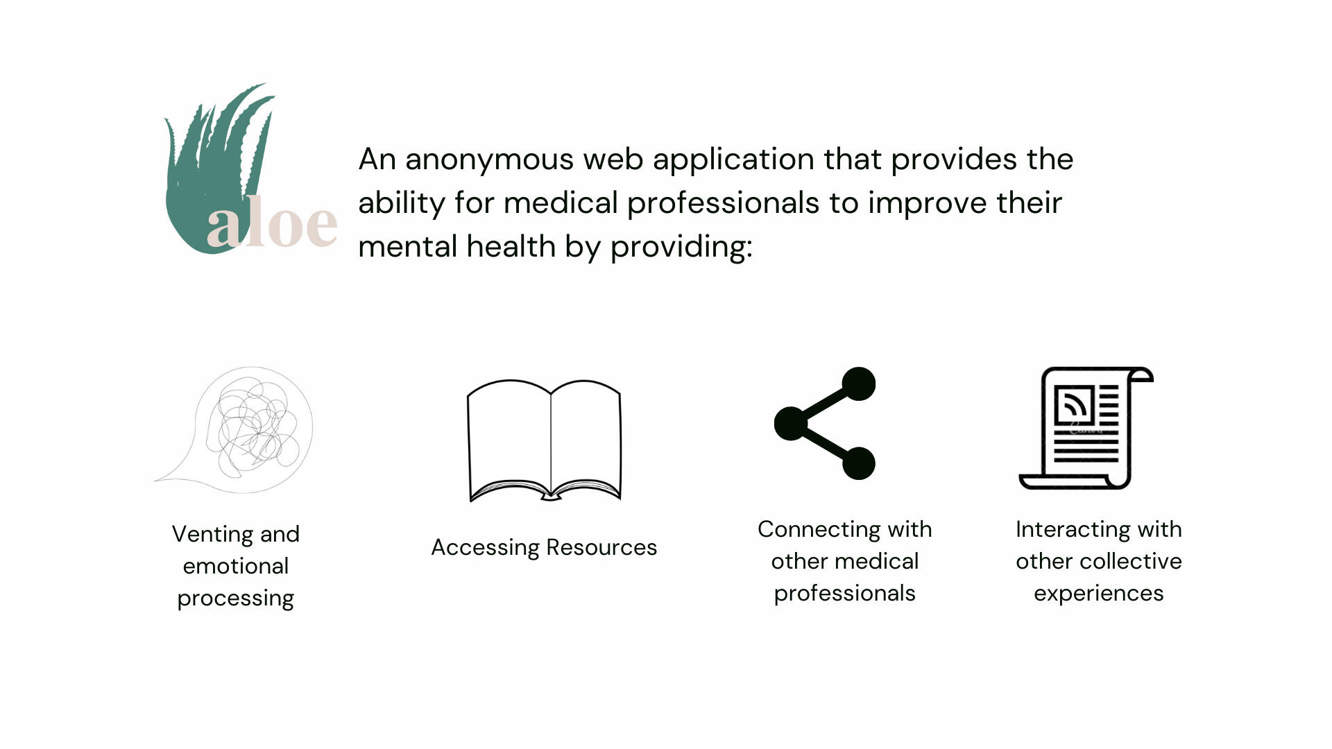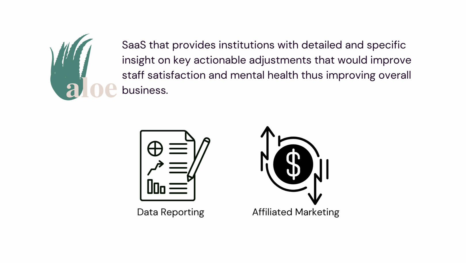 We proposed that "aloe" be a SaaS that can produces detailed and anonymous situational and emotional data reports to institutions who want to make actionable changes to improve employee mental health and overall job satisfaction.The data for these reports would be collected from "venting" sessions and community forums which would produce raw and comprehensive insights on potential areas of improvement within an institution.