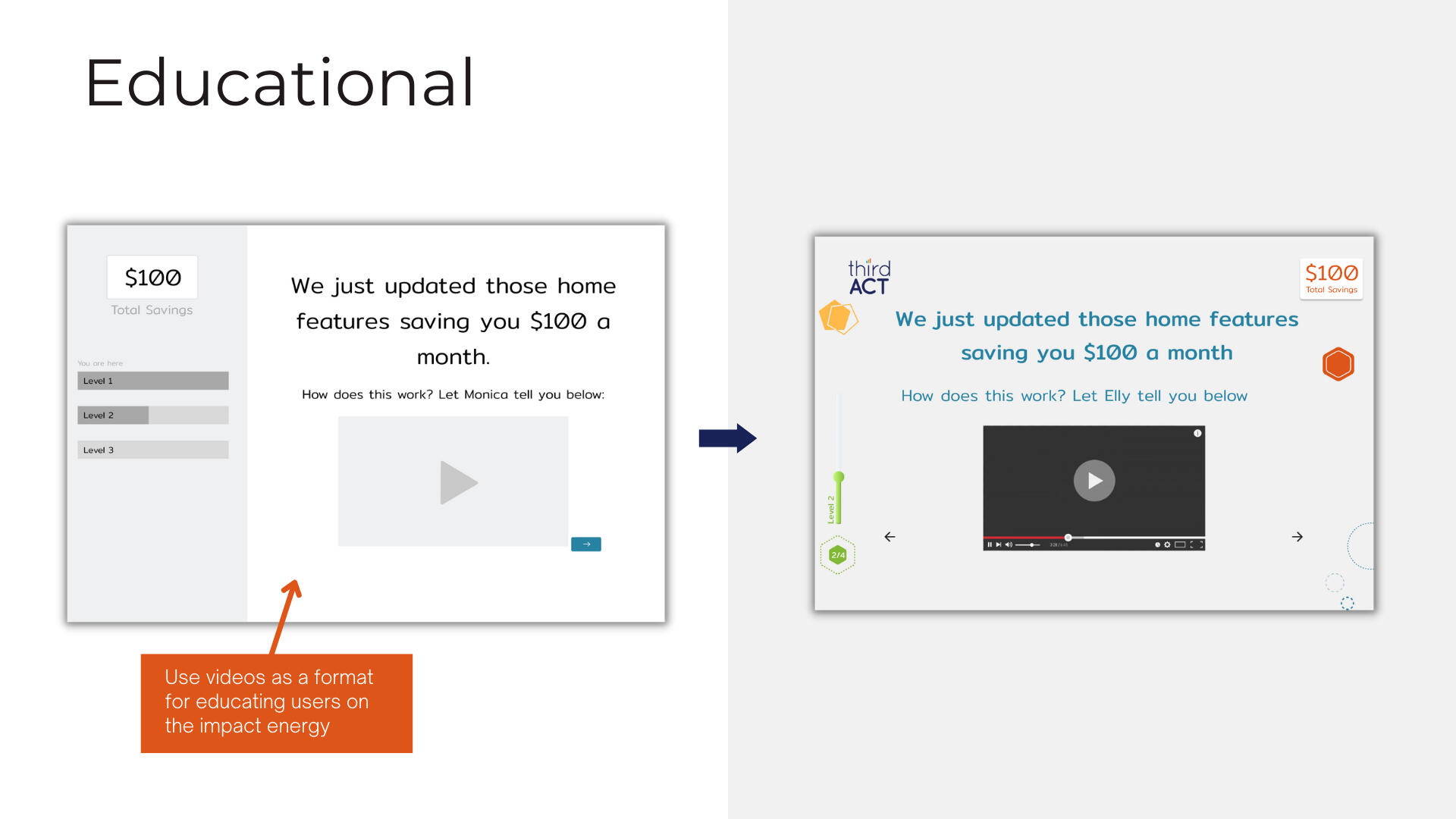 Lastly, we wanted the product to be very interactive, therefore we ensured to cognitively link the answers to their questions with the increasing monthly savings on their electricity bill.