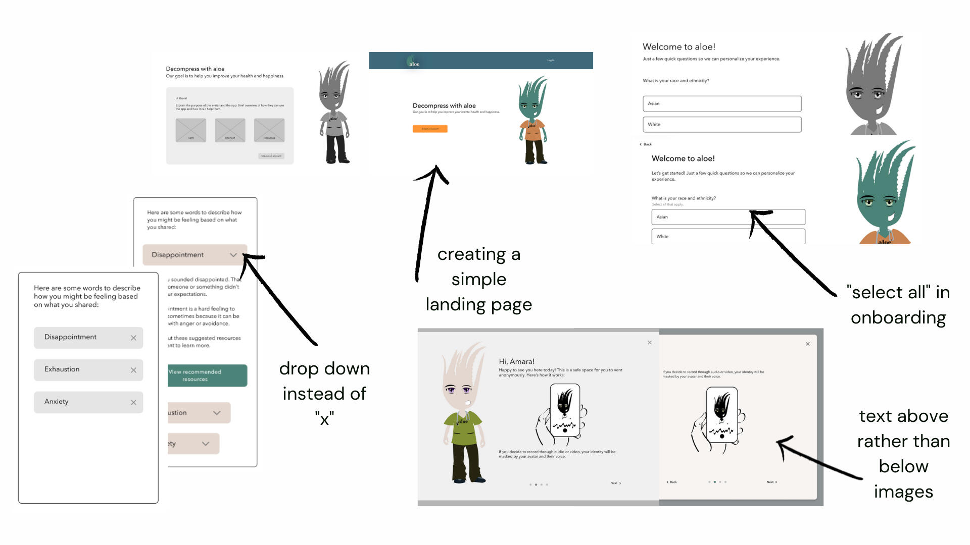 Users heavily noted a desire to discuss problems within their daily lives and institutions without being reprimanded negatively. Therefore, we wanted to ensure anonymity and create a more personal experience by allowing users to customize an avatar named "aloe."
